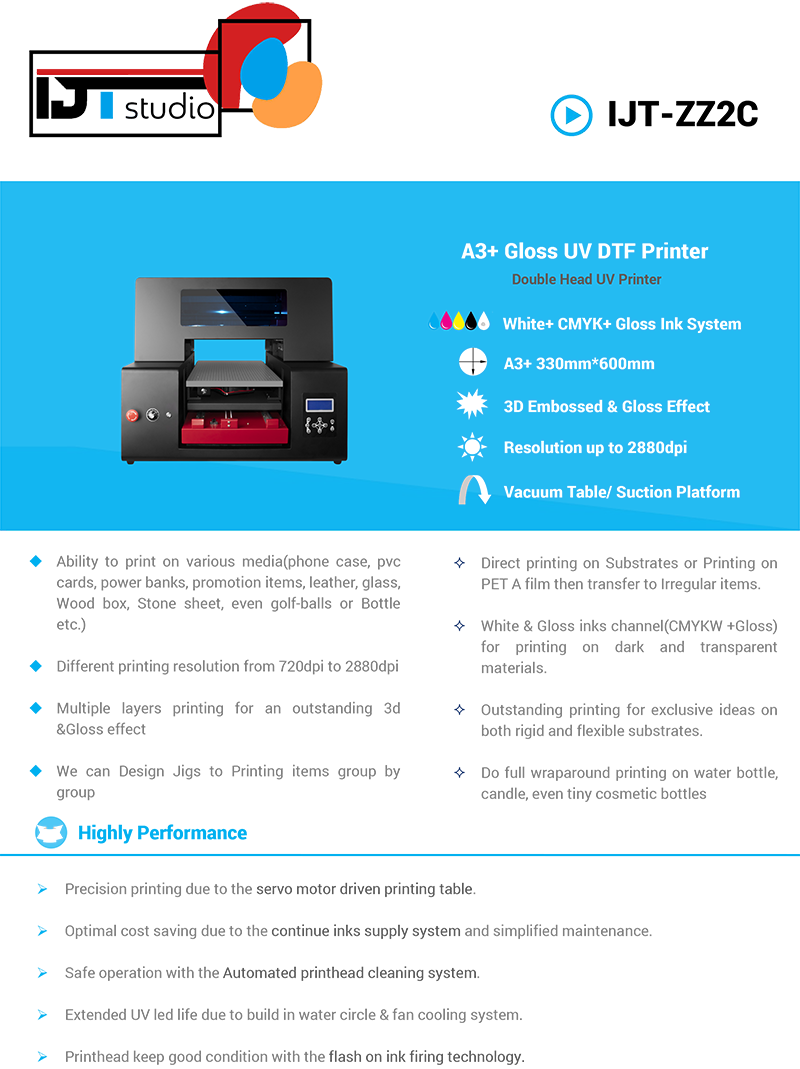- Multiple layers printing for an outstanding 3D & Gloss effect